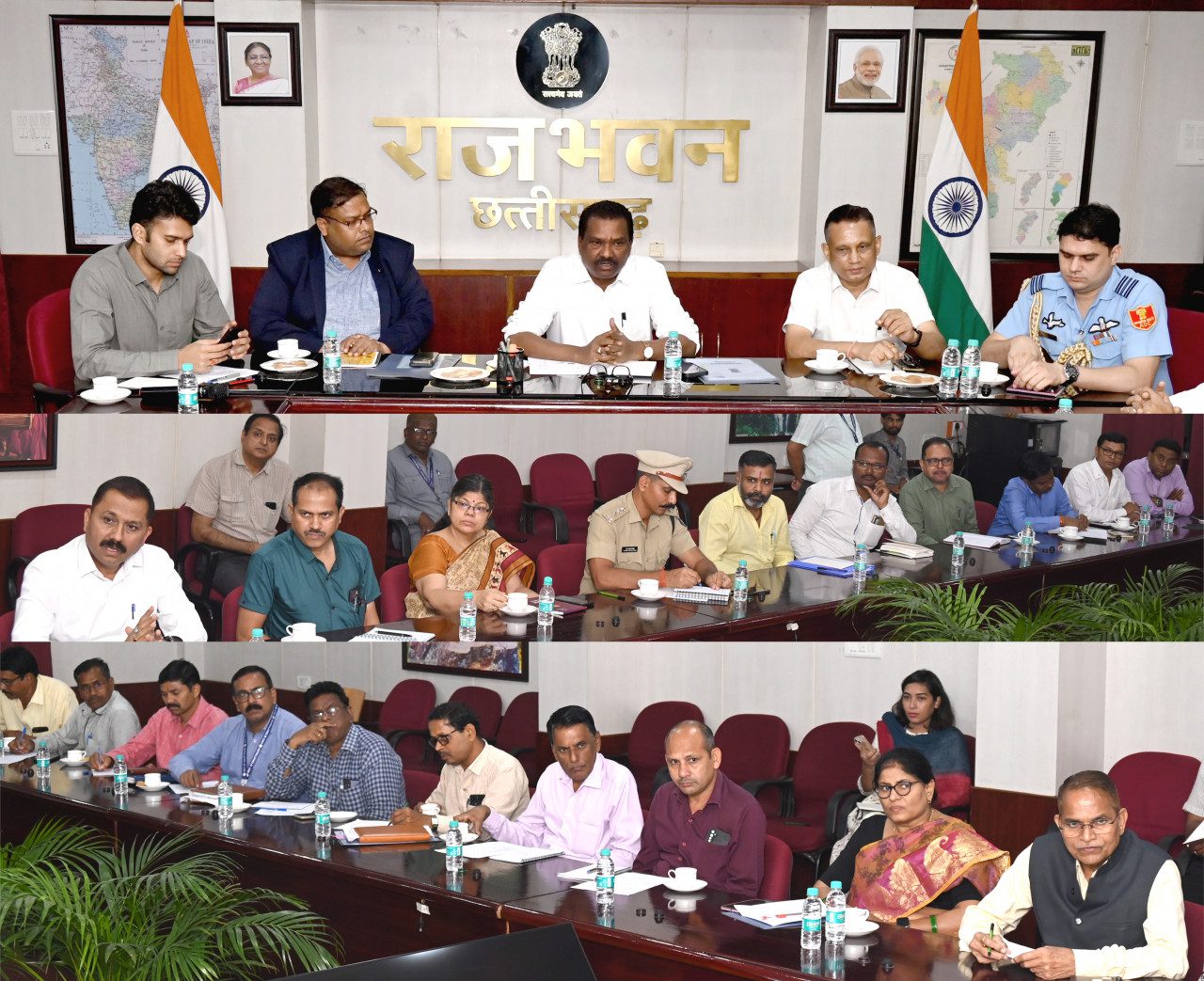 बैठक में राज्यपाल के उप सचिव श्री दीपक अग्रवाल, नगर-निगम रायपुर के आयुक्त श्री मयंक चतुर्वेदी, राजभवन के अधिकारी, लोक निर्माण विभाग, नगर-निगम, सी.एस ई.बी. एवं अन्य संबंधित विभागों के अधिकारी उपस्थित थे।