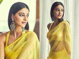 लेटेस्ट तस्वीरों में उनका कातिलाना अवतार फैंस को दीवाना बना रहा है। एक्ट्रेस अनन्या पांडे ने हाल ही में अपनी लेटेस्ट ग्लैमरस फोटोज फैंस के बीच शेयर कर इंटरनेट पर सनसनी मचा दी है। इन तस्वीरों में उनका साड़ी में ट्रेडिशनल अंदाज देखकर फैंस दीवाने हो गए हैं, साथ ही उनके लुक पर से फैंस की नजरें हटने का नाम नहीं ले रही हैं। अनन्या पांडे ने अपनी लेटेस्ट तस्वीरों में येलो कलर की खूबसूरत साड़ी पहनी हुई है, जिसमें वो बेहद ही गॉर्जियस नजर आ रही हैं। अभिनेत्री अपने इस लुक में काफी सिजलिंग और हॉट नजर आ रही हैं।