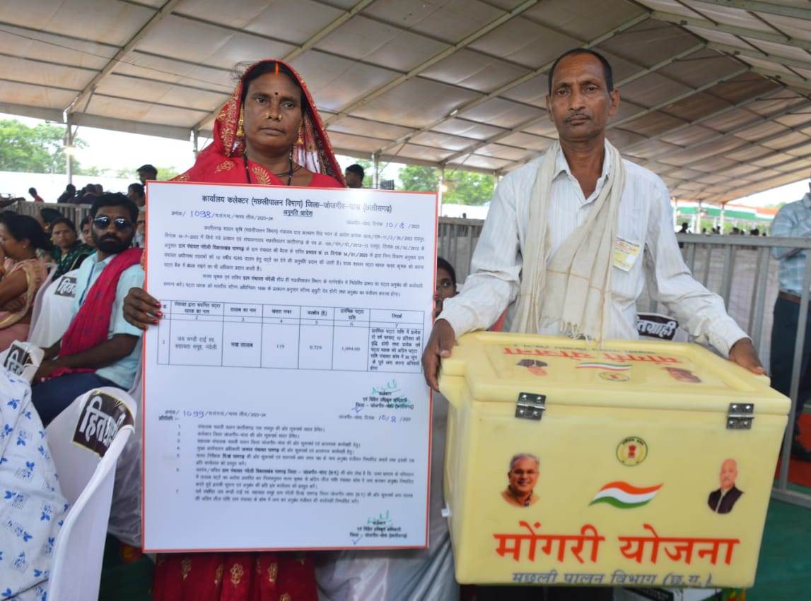 सम्मेलन में ग्राम नंदेली की जय माँ चंडी दाई स्व सहायता समूह को 10 साल के लिए तालाब में मछली पालन के लिए पट्टा मिला। समूह की अध्यक्ष श्रीमती पितर बाई ने कहा कि गाँव के तालाबों का पट्टा देकर मत्स्य पालन के लिए न सिर्फ जाल, आइसबॉक्स, बीज दिया जा रहा है, मछली पालन के व्यवसाय से जोड़कर आत्मनिर्भर बनने के लिए भी गरीबों और गाँव की महिलाओं को आगे बढ़ाया जा रहा है। आइसबॉक्स से लाभान्वित होने वाले ग्राम कमरीद के सूर्या युवा स्व सहायता समूह के अध्यक्ष ने बताया कि तालाब का पट्टा मिलने से मछली पालन के साथ रोजगार के नए अवसर मिला। ग्राम भडेसर की संगीता बाई, रेशमा बाई ने बताया कि उन्हें अंत्यावसायी विभाग से सिलाई मशीन मिला। वे सिलाई का काम करती है। शासन द्वारा 10 हजार रुपए के अनुदान मिला है।