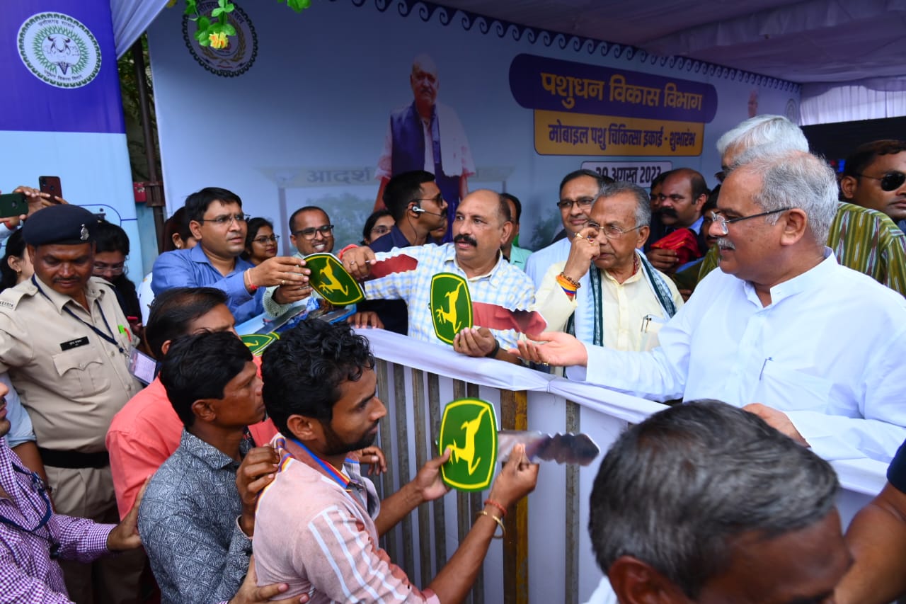 रायपुर मुख्यमंत्री श्री भूपेश बघेल आज जिला मुख्यालय स्थित स्वामी आत्मानंद हिन्दी माध्यम स्कूल महासमुंद मैदान पर राजीव गांधी किसान न्याय योजना एवं अन्य योजनाओं के सामग्री वितरण कार्यक्रम में पहुंचे।