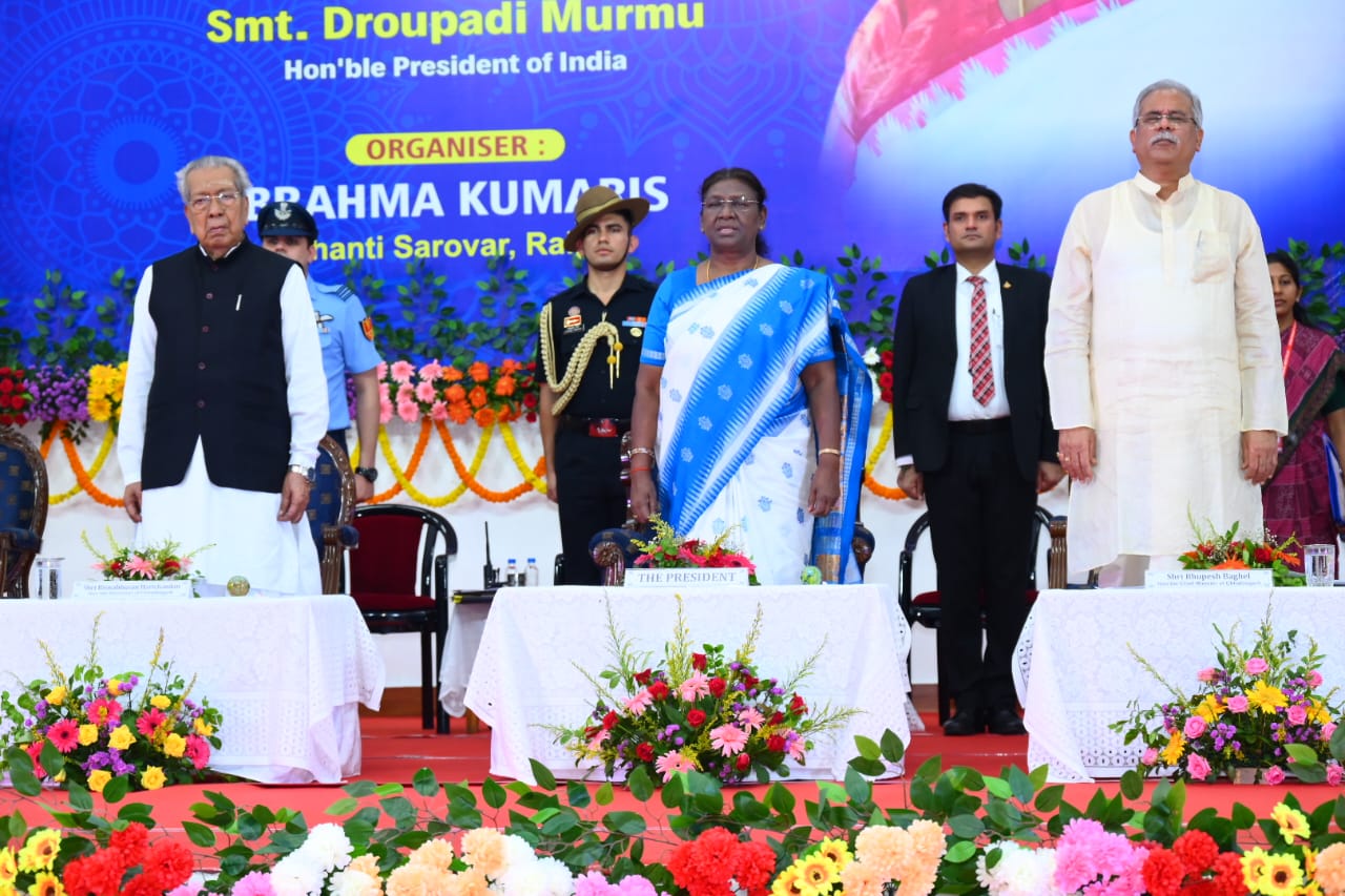 रायपुर जय जोहार, छत्तीसगढ़िया सबले बढ़िया। मुझे छत्तीसगढ़ की धरती पर आप सबसे मिलने का अवसर मिला। मेरी इच्छा आज पूरी हुई। एक कहावत है छत्तीसगढ़िया सबले बढ़िया, ऐसी कहावतों के माध्यम से सदियों से चल रहे सत्य को मात्र शब्दों में कह दिया जाता है। यह बात आज यहां रायपुर के शांति सरोवर स्थित प्रजापिता ब्रह्मकुमारी ईश्वरीय विश्वविद्यालय के वार्षिक परियोजना सकारात्मक परिवर्तन वर्ष 2023 के शुभारंभ समारोह के अवसर पर राष्ट्रपति श्रीमती द्रौपदी मुर्मु ने कही।