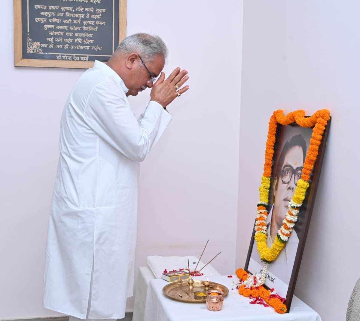 रायपुर मुख्यमंत्री श्री भूपेश बघेल ने आज यहाँ अपने निवास कार्यालय में प्रसिद्ध साहित्यकार, भाषाविद् और छत्तीसगढ़ राज्य-गीत के रचयिता स्वर्गीय डॉ. नरेन्द्र देव वर्मा की पुण्यतिथि पर उनके छायाचित्र पर पुष्प अर्पित कर उन्हें नमन किया । मुख्यमंत्री ने डॉ. वर्मा के साहित्य में अमूल्य योगदान को याद करते हुए कहा कि डॉ. नरेन्द्र देव ने अपने रचनाओं के माध्यम से छत्तीसगढ़ की सांस्कृतिक अस्मिता की पहचान बनाने में महत्वपूर्ण भूमिका निभाई। उन्होंने जो भी लिखा, वह लोगों की अंतरआत्मा में उतर गया। ’अरपा-पइरी के धार, महानदी हे अपार……’ के रूप में उन्होंने अमर रचना दी है, जिसमें छत्तीसगढ़ महतारी का वैभव साकार हो उठा है। उनकी कलम से निकला यह गीत आज छत्तीसगढ़ के स्वाभिमान का प्रतीक बन चुका है।