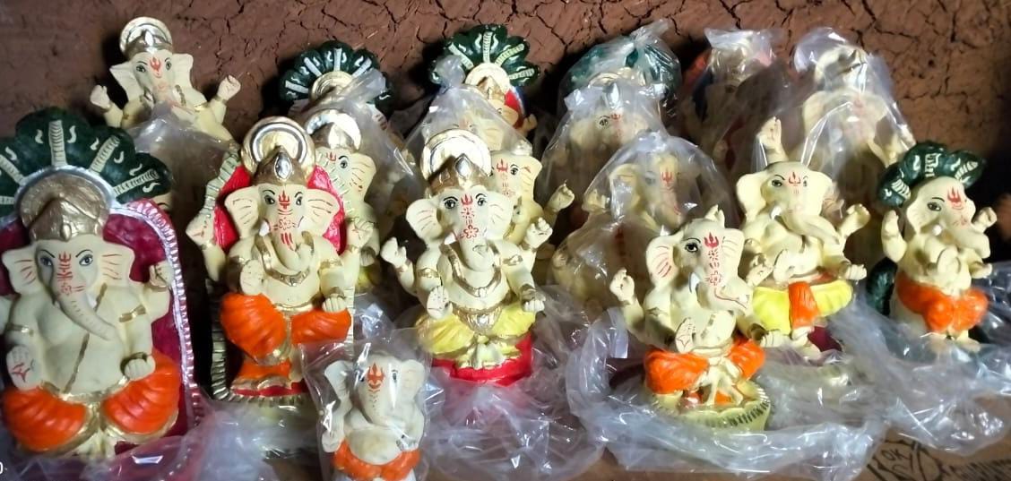 गणेश उत्सव में घर-घर विराजेंगे इको फ्रेंडली गणपति, समूह की महिलाएं बना रहीं रीपा में प्रतिमाएं