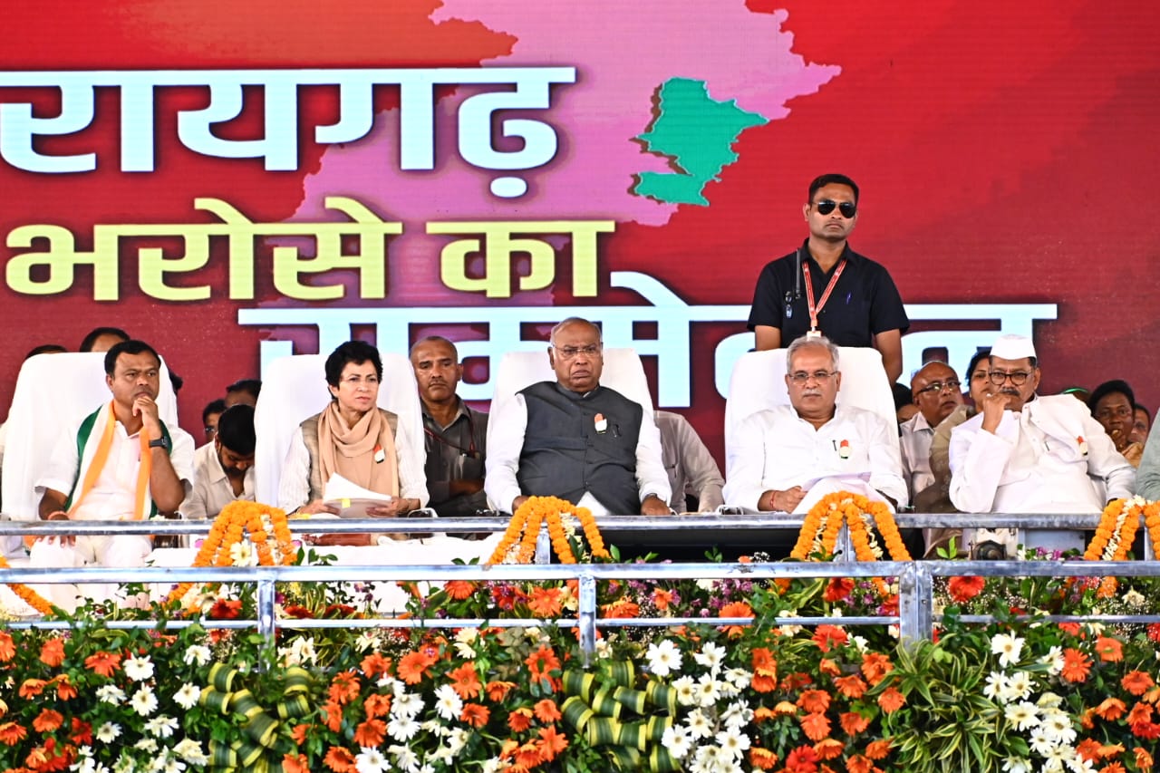 रायगढ़ रायगढ़ के कोड़ातराई में 04 अक्टूबर को भरोसे के सम्मेलन कार्यक्रम में नेता प्रतिपक्ष राज्यसभा व सांसद श्री मल्लिकार्जुन खडग़े व मुख्यमंत्री श्री भूपेश बघेल ने 82 चयनित विकासखण्डों में बनने वाले जैतखाम का शिलान्यास किया।
