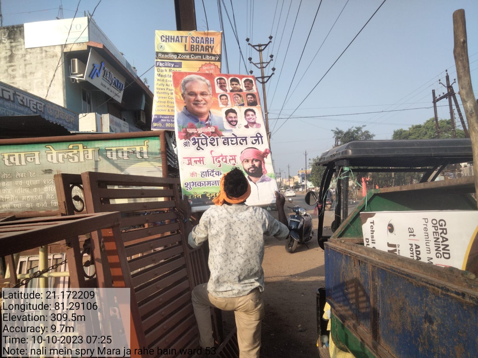 सोमवार से शुरू हुई कार्रवाही आज दूसरा दिन भी शहर के कोने कोने से उतरने लेगें दो दिनों में राजनीतिक दलों के बैनर, पोस्टर, फ्लैक्स झंडे को निगम की टीम ने सार्वजनिक स्थान से 3,194,निजी स्थानों से 54 से हटाए गए हैं।इसके अलावा घूम-घूम कर संपत्ति विरूपण नियम के तहत बैनर, पोस्टर, फ्लैक्स, झंडे को जब्ती बनाया गया। साथ ही दीवारों से वाल राइटिंग को भी शहर के कोने कोने से निगम की टीम निरीक्षण कर कार्रवाही कर रही है। दिनभर जीई रोड से लेकर वार्डो के गली मोहल्ले के साथ- साथ ही सड़क के दोनों किनारे,जी रोड मुखमार्ग,गौरवपथ महाराजा चौक,पोटिया चौक,पुलगांव चौक,इदिरा मार्केट क्षेत्र,स्टेशन रोड,ग्रीन चौक,मालवीय नगर,रायपुर नाका सहित संपूर्ण नगर निगम क्षेत्र में लगे बैनर, पोस्टर,फ्लैक्स को जब्त किया।