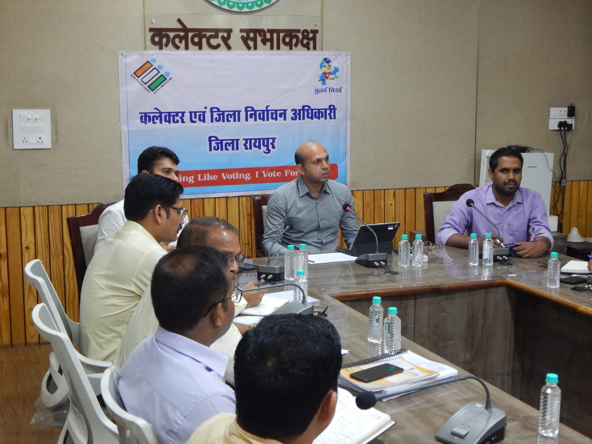 रायपुर। विधानसभा निर्वाचन 2023 अंतर्गत रायपुर जिले में अब तक की गई प्रशासनिक तैयारी की जिला निर्वाचन अधिकारी डॉ सर्वेश्वर भुरे ने समीक्षा की। उन्होंने निर्वाचन कार्य से संबद्ध सभी अधिकारियों को आपस में समन्वय बनाकर जिले में शांतिपूर्ण एवं निष्पक्ष तथा परदर्शी मतदान निर्वाचन आयोग के निर्देशानुसार संपन्न कराने के निर्देश दिए। जिला निर्वाचन अधिकारी डॉ भुरे ने मतदान केन्द्रों में की गई आवश्यक तैयारी, सेक्टर अधिकारी सहित मतदान दलों का प्रशिक्षण, ईव्हीएम, वीवीपैट का भण्डारण, कमिशिनिंग, राजनीतिक दलों का प्रशिक्षण सहित मतदान एवं मतगणना स्थल में की गई तैयारी, वाहन व्यवस्था, वीडियों अवलोकन, वीडियोग्राफी,मीडिया प्रमाणन एवं मीडिया अनुवीक्षण टीम आदि के लिए अबतक की गई तैयारी की विस्तृत जानकारी अधिकारियो से ली।