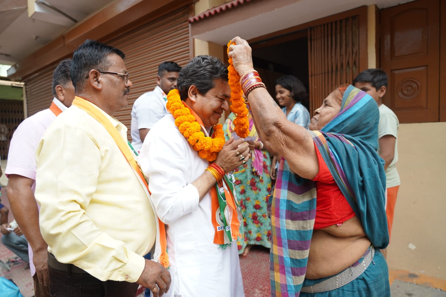 जनसंपर्क के दौरान जगह-जगह पर माता बहनों के द्वारा पुष्पगुच्छ आरती एवं विजय तिलक लगाकर स्वागत कर दिया आशीर्वाद।
