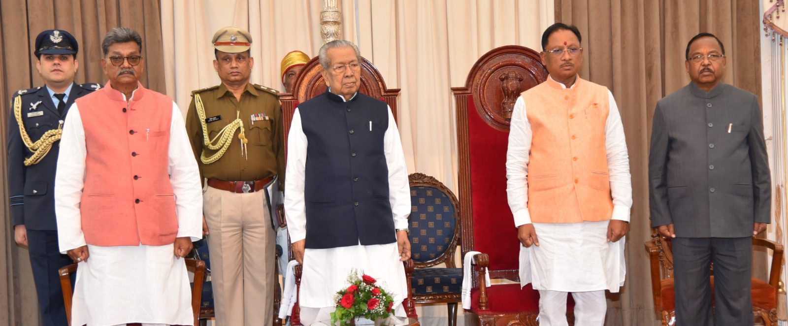इस अवसर पर मुख्यमंत्री श्री विष्णु देव साय, उप मुख्यमंत्री द्वय श्री अरूण साव एवं श्री विजय शर्मा, विधानसभा अध्यक्ष श्री चरण दास महंत, पूर्व मुख्यमंत्री द्वय श्री भूपेश बघेल, डॉ. रमन सिंह, पूर्व मंत्री एवं विधायक श्री बृजमोहन अग्रवाल, श्री राजेश मूणत, श्री पुन्नुलाल मोहिले, श्री अजय चंद्राकर, श्री दयालदास बघेल, पूर्व विधानसभा अध्यक्ष एवं विधायक श्री धरमलाल कौशिक, नवनिर्वाचित विधायक, जनप्रतिनिधिगण एवं मुख्य सचिव श्री अमिताभ जैन, अतिरिक्त मुख्य सचिव द्वय श्रीमती रेणु जी पिल्ले, श्री सुब्रत साहू, पुलिस महानिदेशक श्री अशोक जुनेजा, राज्यपाल के सचिव श्री अमृत कुमार खलखो, उप सचिव श्री दीपक अग्रवाल सहित वरिष्ठ प्रशासनिक अधिकारीगण उपस्थित थे। कार्यक्रम का संचालन छत्तीसगढ़ विधानसभा के सचिव श्री दिनेश शर्मा ने किया।