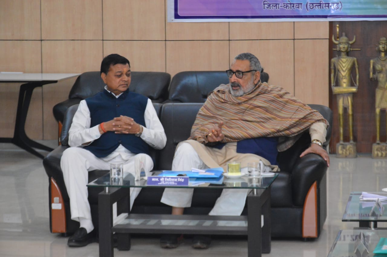 रायपुर केन्द्रीय ग्रामीण विकास एवं पंचायती राज मंत्री श्री गिरिराज सिंह ने कल देर शाम कोरबा स्थित एनटीपीसी के कावेरी भवन में पंचायत एवं ग्रामीण विकास से संबंधित अधिकारियों की समीक्षा बैठक ली। उन्होने जिले में मनरेगा, एनआरएलएम, प्रधानमंत्री ग्राम सड़क योजना, भू-अभिलेख आधुनिकीकरण,वाटरशेड, अमृत सरोवर सहित अन्य योजनाओं की विस्तृत समीक्षा की। केन्द्रीय मंत्री श्री सिंह ने जिले में चार, चिरौंजी, केला, पपीता उत्पादन को प्रोत्साहित करते हुए पशुपालन को बढ़ावा देने और सामाजिक वानिकी को स्थापित करते हुए पंचायतों को सशक्त बनाने की दिशा में प्रयास करने के निर्देश दिए।