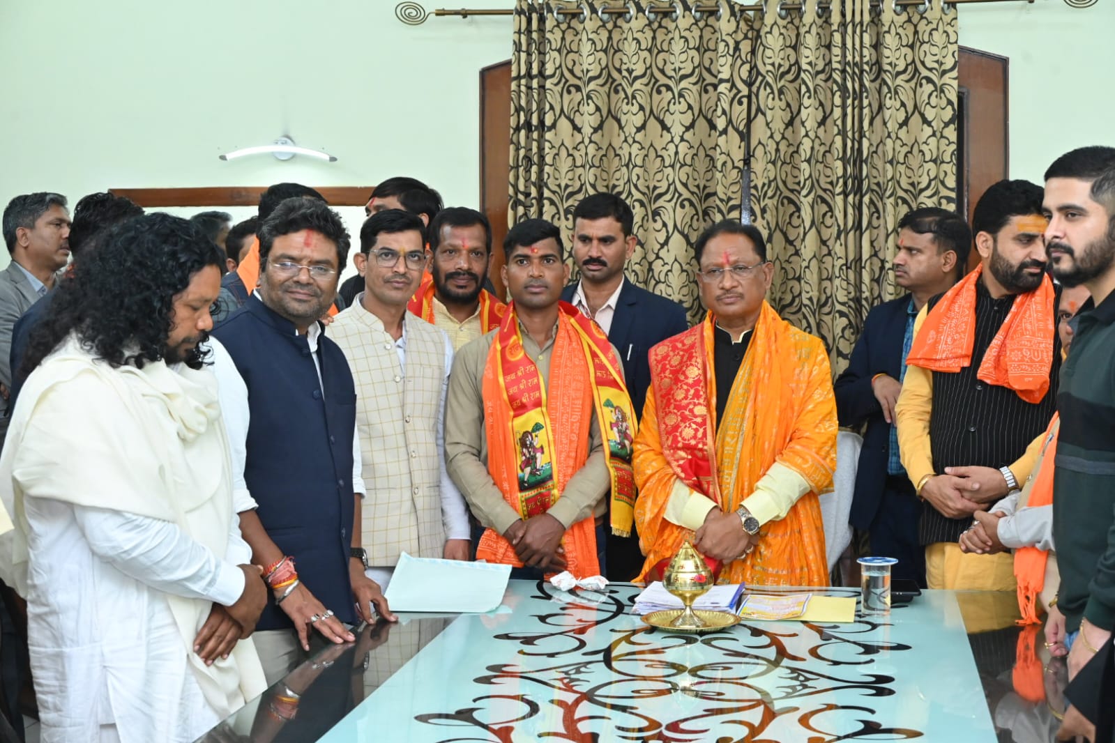 श्री आयोध्याधाम से पावन ज्योति लेकर छत्तीसगढ़ पहुंचे रामभक्तों ने मुख्यमंत्री श्री साय को बताया कि रामभक्तों का सात सदस्यीय दल रामजन्मभूमि से ज्योति कलश लाने गया था।