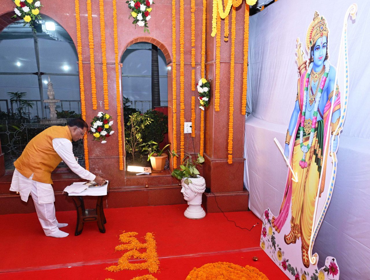 गौरतलब है कि अयोध्या में आज भगवान श्री रामलला की प्राण प्रतिष्ठा की गई है और इस शुभ अवसर पर मुख्यमंत्री निवास पहुना को दीयों, फूलों और रंग-बिरंगी झालरों से सजाया गया है। दीयों से सुसज्जित जगमगाता परिसर राममय हो गया है। पहुना में भी भगवान श्री रामलला के प्राण प्रतिष्ठा का यह उत्सव दीपावली की तरह मनाया जा रहा है।