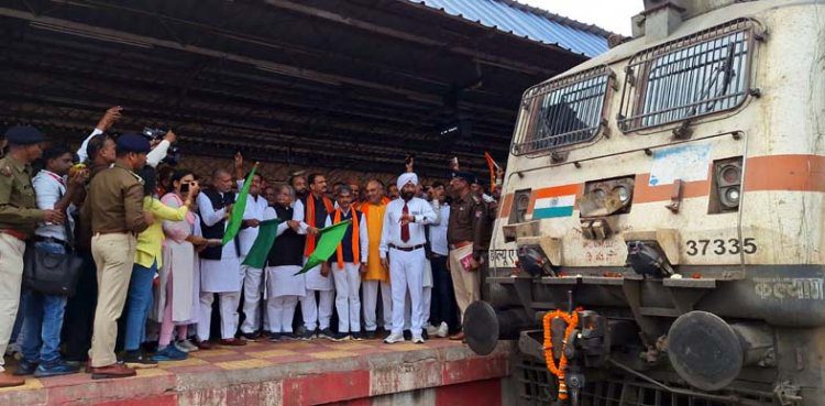दुर्ग। दुर्ग संभाग के 20 विधानसभाओं के रामभक्तों को लेकर आस्था स्पेशल ट्रेन दुर्ग रेलवे स्टेशन से दोपहर 12:20 पर रवाना हुई। ट्रेन को कैबिनेट मंत्री श्याम बिहारी जायसवाल, दयाल दास बघेल, बीजेपी प्रदेश अध्यक्ष किरण सिंह देव, राम मंदिर दर्शन समिति के प्रदेश संयोजक एवं विधायक धरमलाल कौशिक ने हरी झंडी दिखाकर रवाना किया।
