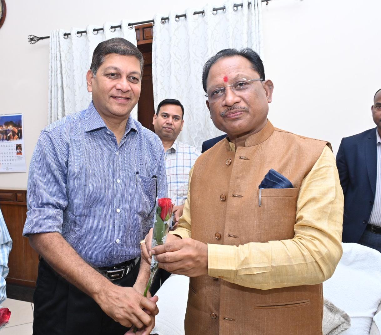 रायपुर मुख्यमंत्री श्री विष्णु देव साय से आज यहां राज्य अतिथि गृह पहुना में मुख्य सचिव श्री अमिताभ जैन, पुलिस महानिदेशक श्री अशोक जुनेजा सहित अन्य वरिष्ठ अधिकारियों ने मुलाकात कर उन्हें जन्मदिवस की हार्दिक बधाई एवं शुभकामनाएं दीं।