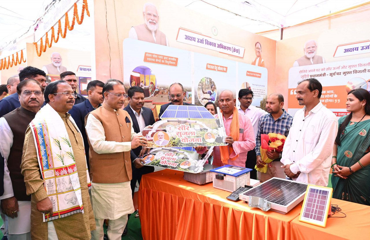 श्री मोदी ने प्रधानमंत्री नवीन एवं नवीकरणीय ऊर्जा मंत्रालय अंतर्गत 907 करोड़ रूपए की लागत से राजनांदगांव जिले के 9 गांवो के 451 एकड़ क्षेत्र में निर्मित 100 मेगावाट एसी/155 मेगावाट डीसी सौर ऊर्जा प्रोजेक्ट का लोकार्पण किया।