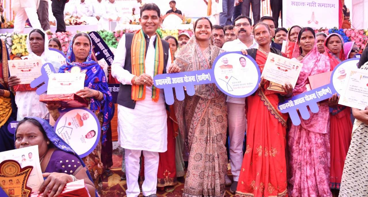महिला एवं बाल विकास मंत्री श्रीमती लक्ष्मी राजवाड़े ने अपने अध्यक्षीय उद्बोधन मे कहा कि नारी कैसे आगे बढ़े इसके लिए महिला समूहों का गठन किया गया है। अब महिलाएं केंद्र एवं राज्य सरकार की योजनाओं का लाभ लेकर आत्मनिर्भर बन रही है। प्रधानमंत्री श्री नरेंद्र मोदी ने जनधन खाता के माध्यम से महिलाओं को बैंक से लेनदेन शुरू करने की पहल की है। अब महिलाएं बेहिचक बैंक जा रही हैं। घर-घर शौचालय निर्माण कराकर महिला सम्मान बढ़ाने का काम किये हैं। इसके साथ ही प्रधानमंत्री आवास योजना, प्रधानमंत्री उज्ज्वला योजना का लाभ महिलाओं को मिल रहा है। उन्होंने कहा कि कम दाम में गैस सिलेंडर देने की बात को भी हमारी सरकार बहुत जल्द अमलीजामा पहनाएगी। उन्होंने कहा कि महतारी वंदन योजना की राशि की पहली किश्त अगले कुछ दिनों में महिलाओं के खाते में अंतरित कर दी जाएगी। हर माह एक हजार रुपया मिलेगा। जिससे दैनिक खर्च के साथ ही अन्य महत्वपूर्ण कार्य में लगा पाएंगी। हमारी सरकार बहुत तेजी से घोषणाओं को पूरा कर रही है। अब छत्तीसगढ़ में विकास की गंगा बहने वाली है। कार्यक्रम को पूर्व विधायक डॉ सनम जांगड़े, नगर पालिका अध्यक्ष श्री चित्तावर जायसवाल, जनपद अध्यक्ष श्रीमती सुमन योगेश वर्मा ने भी संबोधित किया।