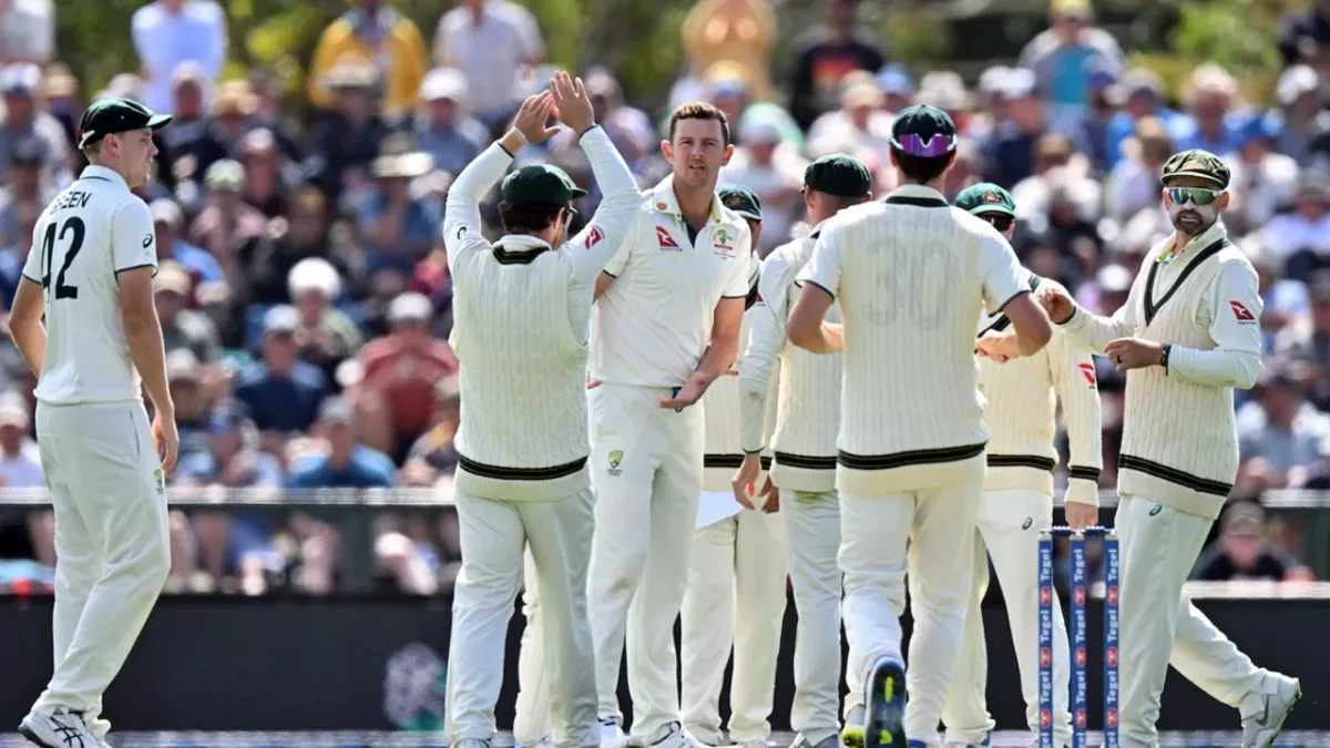 कंगारू टीम के तेज गेंदबाज जोश हेजलवुड ने घातक गेंदबाजी करते हुए 5 विकेट चटकाए। यह उनके टेस्ट करियर का 12वां और कीवी टीम के खिलाफ दूसरा 5 विकेट हॉल रहा।उन्होंने लैथम, विलियमसन, रचिन, मिचेल और हेनरी के रूप अहम विकेट हासिल किए। उन्होंने कुल 13.2 ओवर गेंदबाजी की, जिसमें 31 रन देते हुए ये सफलताएं हासिल की। उन्होंने पारी में 4 ओवर मेडन भी फेंके।उनके अब 70 टेस्ट की 131 पारियों में 272 विकेट हो गए हैं।