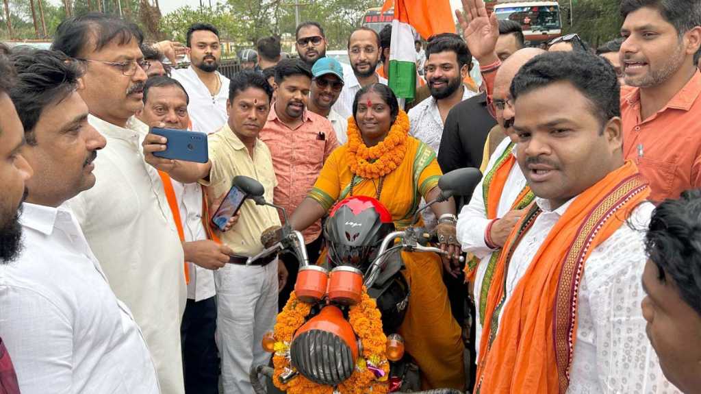 पीएम मोदी का प्रचार करने तमिलनाडू से निकली बुलेट रानी राजलक्ष्मी, भिलाई में भाजपा कार्यकार्ताओं ने किया अभिनंदन