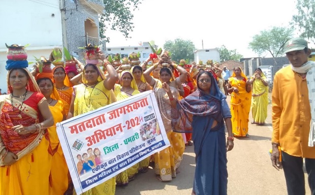 धमतरी । जिले में शुक्रवार को भक्त माता कर्मा की जयंती मनाई जा रही है। वहीं लोकसभा निर्वाचन 2024 के तहत आगामी 26 अप्रैल को होने वाले मतदान के लिए लोकतंत्र का पर्व भी जिले में बढ़-चढकर मनाया जा रहा है। इन दोनों ही पर्वों को जिलेवासी हर्षोल्लास से बना रहें हैं, घरों में रंग-बिरंगी आकर्षक रंगोली सजायी गई है, वहीं महिलाएं हाथों में मेहंदी सजायीं हैं तथा कलश यात्रा सहित अनेक कार्यक्रम आयोजित किए जा रहे हैं।