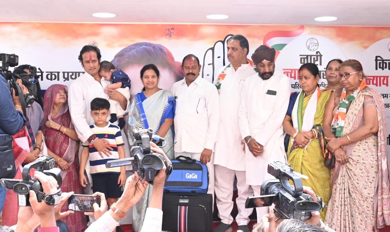 रायपुर । लोकसभा प्रत्याशी विकास उपाध्याय ने अनोखे अंदाज में चुनावी यात्रा का आरंभ कर दिया है। कांग्रेस भवन गांधी मैदान में शनिवार को वरिष्ठ नेता धनेंद्र साहू, सत्यनारायण शर्मा, राजेंद्र तिवारी, छाया वर्मा, अनीता शर्मा, कुलदीप जुनेजा, पंकज शर्मा, शैलेश नितिन त्रिवेदी, गिरीश दुबे, उधो राम वर्मा, प्रमोद दुबे, कन्हैया अग्रवाल की मौजूदगी में न्याय रथ का शुभारंभ किया। इस दौरान विकास उपाध्याय की माता एवं उनकी धर्मपत्नी सहित बच्चे भी उपस्थित थे। उन्होंने अपनी माता से आशीर्वाद लेकर चुनावी यात्रा के लिए निकल पड़े।
