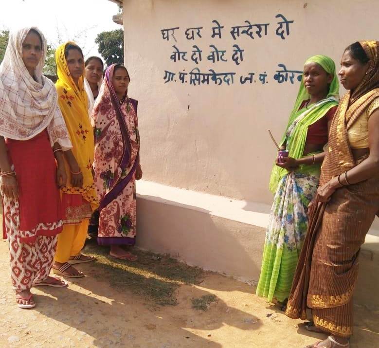 इसी कड़ी में आज दूरस्थ ग्राम सभी ब्लॉक में दीवार लेखन भी किया गया। सिमकेदा और अमलडीहा,कटकोना,गुरमा बेला,तराईमारडीह,कनकी,घिनारा, ढोंढातराई सहित अन्य ग्रामों में स्वसहायता समूह/बिहान से जुड़ी महिलाओं ने दीवार लेखन कर मतदाताओं को जागरूक किया। उन्होंने प्रेरक सन्देश से मतदान दिवस 07 मई को मतदान करने की अपील मतदाताओं से की। महिलाओं ने मतदान का महत्व बताते हुए लोकतंत्र के निर्माण में मतदाताओं को जागरूक होकर मतदान करने की अपील की। इसी तरह पोड़ी उपरोड़ा के एनआरएलएम कैडर और जनपद पंचायत के कर्मचारियों द्वारा रैली निकालकर मतदाताओं को मतदान करने प्रेरित किया गया। इसी तरह कटघोरा अंतर्गत ग्राम झाबर,बेलटिकरी में समूह की महिलाओं ने दीवार लेखन कर मतदाताओं को जागरूक करने का अभियान चलाया। स्काउट गाइड द्वारा भी शार्ट पोस्टर के माध्यम से मतदाताओं को जागरूक किया जा रहा है। ग्राम डूमरकछार में मतदान की शपथ भी दिलाई गई।