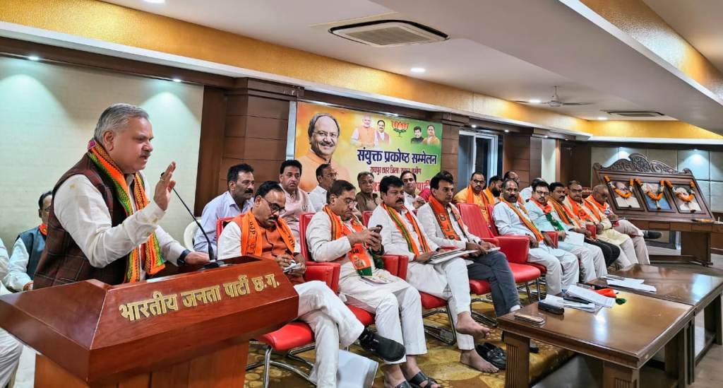 रायपुर । लोकसभा चुनाव के मद्देनजर रायपुर जिले की सभी 5 विधानसभा क्षेत्रों की कोर कमेटी के सदस्यों और लोकसभा चुनाव प्रबंधन समिति के सदस्यों की बैठक भारतीय जनता पार्टी के एकात्मक परिसर में हुई। इस मौके पर क्षेत्रीय संगठन महामंत्री अजय जाम्वाल की उपस्थिति में संगठन के पदाधिकारियों के साथ चुनावी रणनीति बनाई गई। बैठक में चुनावी रणनीति एवं उसके क्रियान्वयन हेतु विभिन्न दिशा निर्देश सभी विधानसभाओं के कोर कमिटी सदस्यों और लोकसभा चुनाव प्रबंधन समिति के सदस्यों को जाम्वाल द्वारा दिए गए।