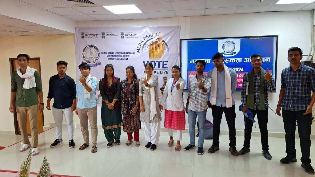 अम्बिकापुर। लोकसभा निर्वाचन 2024 में शत-प्रतिशत मतदान हेतु जिले में मतदाता जागरूकता अभियान के तहत लगातार कार्यक्रम आयोजित किए जा रहे हैं। इसी क्रम में सोमवार को मेडिकल कॉलेज अंबिकापुर में स्वीप मतदाता जागरूकता कार्यक्रम का आयोजन किया गया। कार्यक्रम में कलेक्टर एवं जिला निर्वाचन अधिकारी विलास भोस्कर, जिला पंचायत सीईओ नूतन कुमार कंवर, उपजिला निर्वाचन अधिकारी सुनील नायक, मेडिकल कॉलेज के अस्पताल अधीक्षक डॉ रमणेष मूर्ति, मेडिकल सुपरिटेंडेंट डॉ आर सी आर्या, प्रोफेसर डॉ राजेश श्रीवास्तव, डॉ लखन सिंह सहित कॉलेज के विद्यार्थी उपस्थित थे।