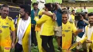 चेन्नई । चेन्नई सुपर किंग्स ने राजस्थान रॉयल्स के खिलाफ आईपीएल 2024 का आखिरी घरेलू लीग मैच खेला। चेन्नई के एमए चिदंबरम स्टेडियम में खेले गए मुकाबले में सुपर किंग्स ने 5 विकेट से जीत दर्ज की। इस जीत के बाद धोनी ने चेन्नई को अलविदा कहा। इस दौरान माही ने सुरेश रैना को गले लगाया। धोनी और रैना के गले लगने का वीडियो सोशल मीडिया पर तेज़ी से वायरल हो रहा है। धोनी और रैना का यह वीडियो फैंस को खूब पसंद आ रहा है। घरेलू मैदान पर आखिरी मैच खेलने के बाद चेन्नई सुपर किंग्स की पूरी टीम ने ग्राउंड का लैप (चक्कर) लगाया। इसी लैप के दौरान सुरेश रैना भी ग्राउंड पर पहुंचे। इसके बाद रैना और धोनी गले मिले। चेन्नई के दिग्गज खिलाडिय़ों का गले लगना फैंस को खूब भाया।