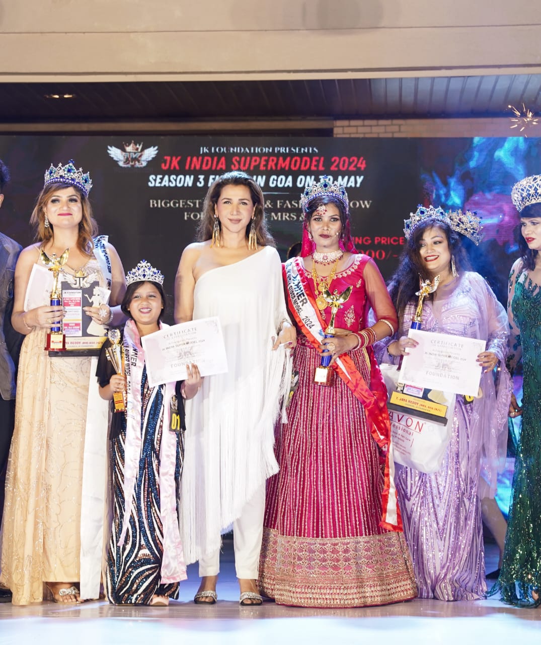 BHILAI । जे के सुपर मॉडल सीजन 3 मिस, मिसेज, मिस्टर और किड्स का आयोजन नॉर्थ गोवा होटल नीलम द ग्रैंड में जे के फाउंडेशन की ऑनर टी जया रेड्डी द्धारा 30 मई को शानदार आयोजन के साथ किया गया जिसमें अभिनेत्री रितु शिवपुरी जो की सेलिब्रिटी अतिथि थी।