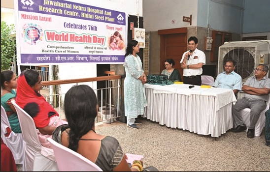 भिलाई । ‘मिशन लक्ष्मी के अंतर्गत 1 जून को भिलाई इस्पात कल्याण चिकित्सालय में महिलाओं से सम्बन्धित पूर्ण शैक्षिक स्वास्थ्य कार्यक्रम और नि:शुल्क परीक्षण हेतु शिविर का आयोजन किया गया। इस अवसर पर मुख्य अतिथि के रूप में मुख्य चिकित्सा अधिकारी चिकित्सा एवं स्वास्थ्य सेवाएं डॉ कौशलेन्द्र ठाकुर थे। यह आयोजन भिलाई इस्पात संयंत्र के जवाहरलाल नेहरु चिकित्सालय एवं अनुसंधान केंद्र तथा निगमित सामाजिक उत्तरदायित्व विभाग के संयुक्त तत्वाधान में किया गया। जिसमें कुल 58 महिला सफाईकर्मियों का नि:शुल्क स्वास्थ्य परीक्षण किया गया। उपस्थित महिला श्रमिकों के एनीमिया व कैसर से संबंधित शंकाओं का समाधान कर, उन्हें आहार विशेषज्ञों द्वारा संतुलित आहार के बारे में विस्तृत जानकारी दी गई।