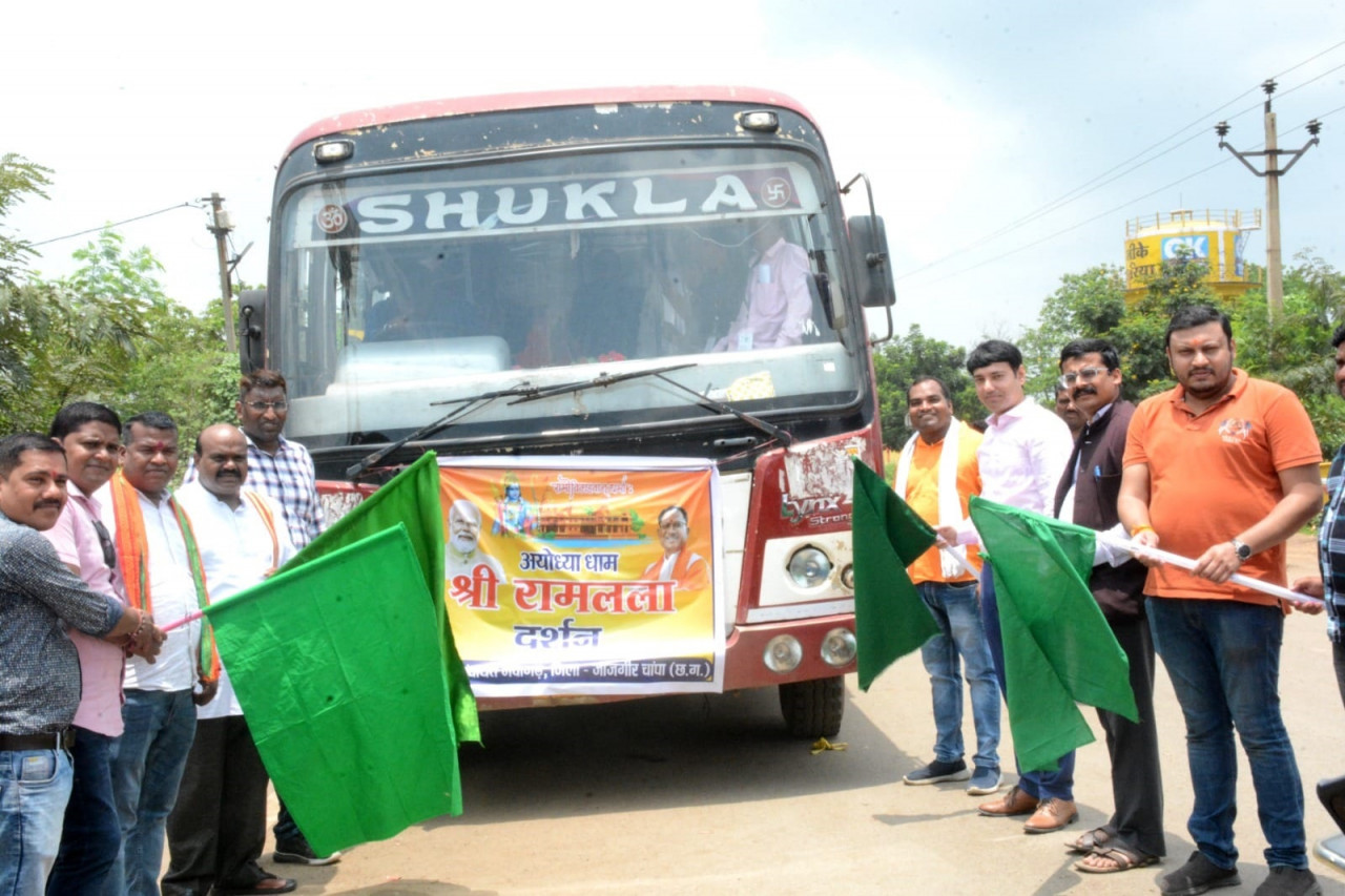 रायपुर मुख्यमंत्री श्री विष्णुदेव साय की सरकार द्वारा संचालित श्री रामलला दर्शन योजना के अंतर्गत आज जांजगीर-चाम्पा जिले के 187 राम भक्तों की टोली एवं 10 एस्कॉर्ट ऑफिसर्स को बिलासपुर रेलवे स्टेशन से अयोध्या जाने वाली विशेष ट्रेन के माध्यम से रवाना किया गया। इस अवसर पर खोखरा चौक, जांजगीर में आयोजित कार्यक्रम में विधायक श्री व्यास नारायण कश्यप, कलेक्टर श्री आकाश छिकारा एवं अन्य जनप्रतिनिधियों ने राम भक्तों को जांजगीर से रेलवे स्टेशन बिलासपुर तक ले जाने वाली बस को हरी झंडी दिखाकर रवाना किया।
