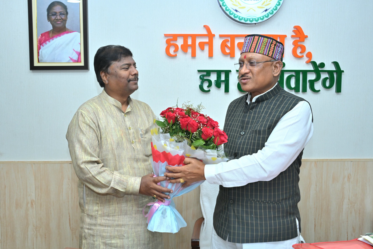 रायपुर मुख्यमंत्री श्री विष्णु देव साय से आज यहाँ उनके निवास कार्यालय में वनमंत्री श्री केदार कश्यप ने सौजन्य मुलाकात की। मुख्यमंत्री ने श्री कश्यप को संसदीय कार्य मंत्री का दायित्व मिलने पर बधाई एवं शुभकामनाएं दी। मुख्यमंत्री श्री साय ने कहा कि श्री कश्यप के लम्बे संसदीय अनुभव का लाभ विधानसभा में कार्य संचालन में मिलेगा।