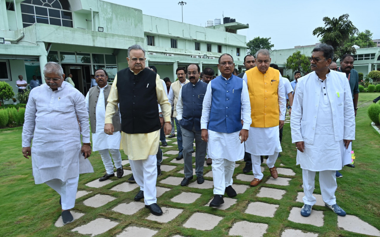 विधानसभा अध्यक्ष डॉ. रमन सिंह, मुख्यमंत्री विष्णु देव साय, नेता प्रतिपक्ष डॉ. चरणदास महंत, उपमुख्यमंत्री अरुण साव कार्यमंत्रणा समिति की बैठक में जाते हुए
