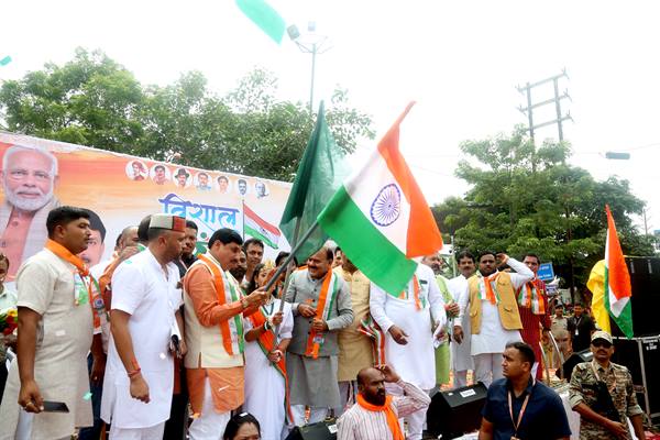 भारत माता की जय के उद्घोष के साथ देशभक्ति की धुन पर तिरंगा लहराते युवा राष्ट्र प्रेम की भावना का संचार कर रहे थे। जन-जन के अभियान के रूप में अपने गंतव्य की ओर अग्रसर यात्रा से क्षेत्र का वातावरण उत्साह और उमंग से परिपूर्ण था।