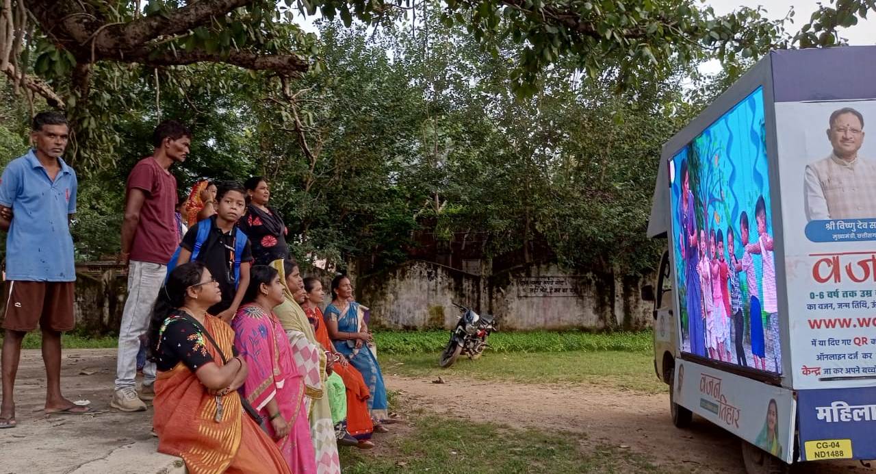 रायपुर, राज्य के बच्चों के उज्ज्वल भविष्य एवं स्वस्थ जीवन के लिए छत्तीसगढ़ शासन द्वारा राष्ट्रीय पोषण माह के अंतर्गत संचालित वजन त्यौहार के तहत लोगों को जागरूक करने के लिए गांव गांव में पोषण रथ का संचालन किया जा रहा है। जिसके तहत जशपुर जिले में बुधवार को पोषण रथ जशपुरनगर पहुंचा। जहां आंगनबाड़ी केंद्र गढ़ाटोली, डीपाटोली, तेलीटोली, चीरबगीचा एवं बघीमा में पहुंच पोषण रथ द्वारा महिलाओं एवं बच्चों को पौष्टिक आहार, टीकाकरण, एनीमिया एवं उससे बचने के उपाय, आयरन फोलिक एसिड की गोली लेने, गर्भवती एवं शिशुवती महिलाओं के सम्पूर्ण देखभाल, डायरिया से बचने के उपाय इत्यादि के संबंध वीडियो दिखाया गया।
